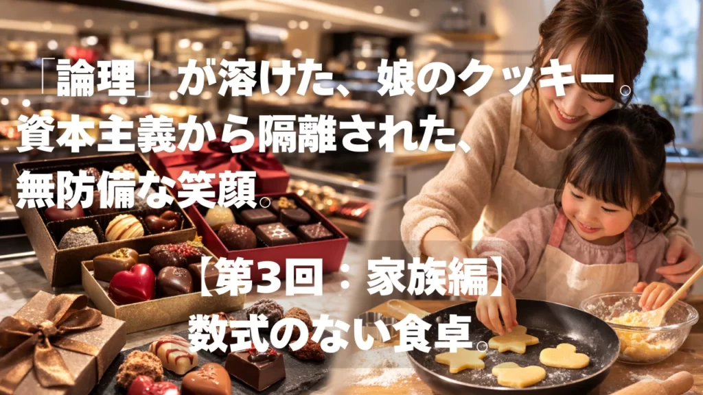 カカオショック2026の喧騒と、キッチンへの「立ち入り禁止」命令 第1回、第2回と、私は2026年のバレンタイン市場を冷徹に解体してきた。カカオショックによる「裏ラベル」の変質、LTV(顧客生涯価値)を狙った企業の排他戦略、そして若者たちの「リスクヘ... 【思考】数学脳が見る日常