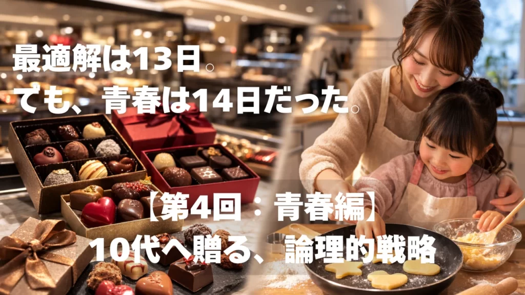 全4回にわたるバレンタイン解体論も、いよいよ終着点だ。 第3回で娘のクッキーに論理を粉砕された後、私はふと考えた。2026年の高度にシステム化された市場を生きる我々大人は、いつから「失敗しないこと」を最優先に動くようになったのだろうか。 10代と... 【思考】数学脳が見る日常