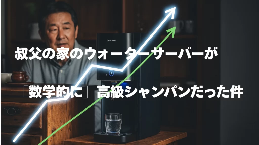 ウォーターサーバーは本当に0円?初期費用0円の仕組みを数学で分解 正月、実家の隣に住む60歳の叔父の家へ新年の挨拶に行った時のことだ。長年使い込まれた古めかしい茶箪笥(ちゃだんす)の横で、そいつは異彩を放っていた。シュッとしたフォルムに、青く... -