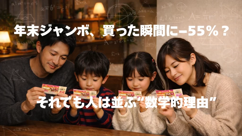 年末、わが家に届く「不発弾」 師走の慌ただしさが極まる頃、妻が家族4人分の宝くじを1枚ずつ買ってくるのがわが家の恒例行事だ。 「当たるわけない」と口では言いながらも、大晦日の夕方になると、テーブルに並べた薄い紙切れを前に、家族の空気はどこか... -